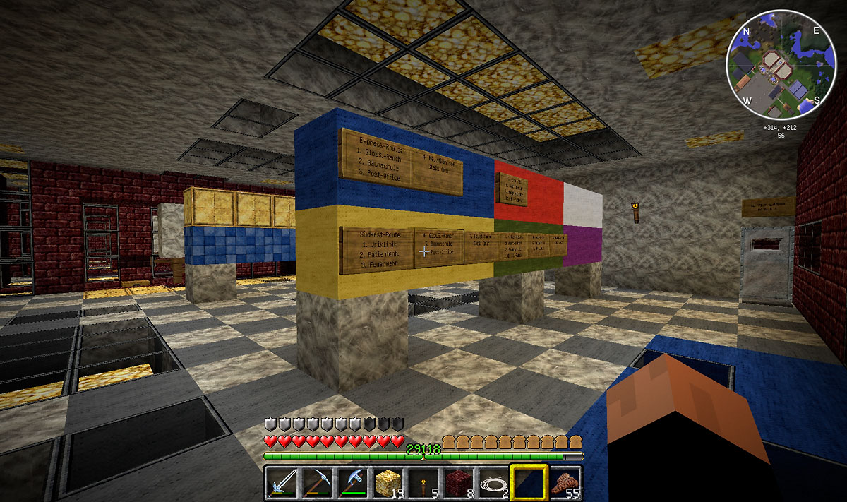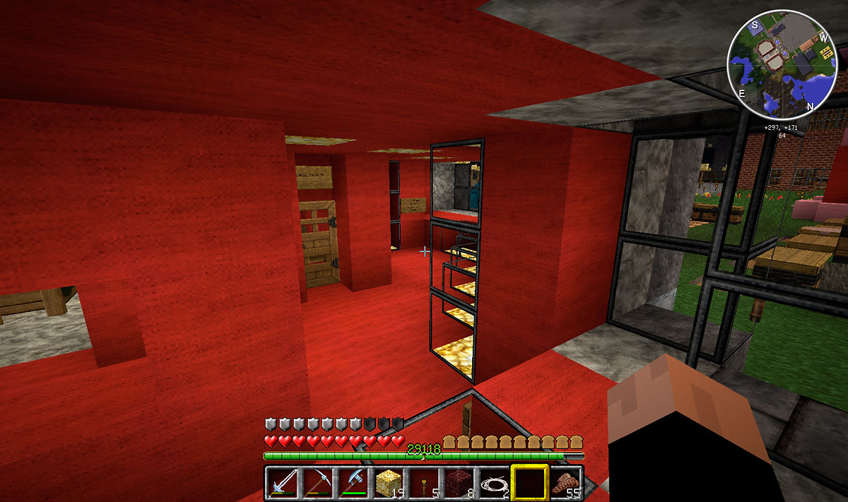 Nachdem Ressourcen gesammelt wurden, entstanden einige kleinere und später auch größere Gebäude in der eigens getauften und ersten enstandenen Stadt Glowstone-City. Die Glowstones “leuchtende Steine” konnten in einer anderen Weltendimension, der Enderwelt, gesammelt werden. Manchmal hat man in der Enderwelt mehr verloren als gewonnen, aber im Team war das Risiko geringer und die Chancen größer, um sehr seltene Ressourcen zu bergen. In Minecraft hat Licht eine sehr große Bedeutung. Licht hält die Gegner ab, wie Creepers, welche sich anschleichen um dann zerstörerisch und zischend zu explodieren.